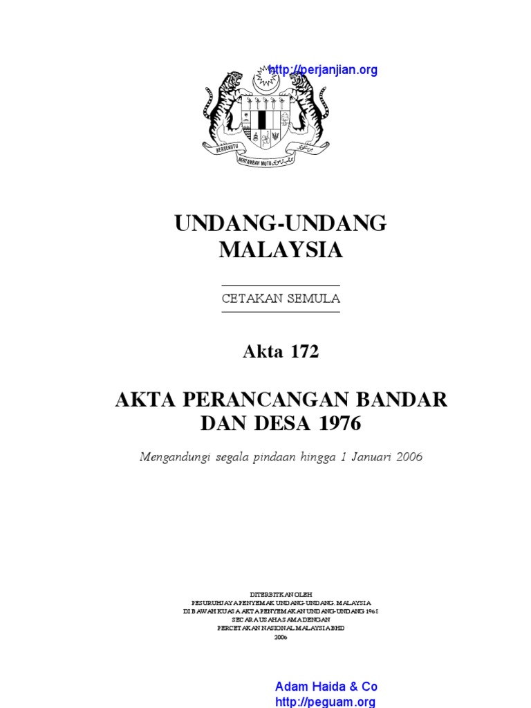 Akta Perancangan Bandar Dan Desa : Sebaran dasar am dan maklumat perundangan di bawah akta 172, (akta perancangan bandar dan desa) kaedah pindaan pelaksanaan akta, manual dan pekeliling melalui skpe for business.jab.. Akta perancangan bandar & desa 1976 (4 jan 2001). Misalnya perjanjian jual beli peralatan kantor antara penjual dan pembeli, atau surat. .dan desa 1976 (akta 172) dipinda dan dikenali sebagai akta perancangan bandar dan desa (pindaan) 2001 (akta a1129). Ia boleh juga bermaksud kaedah untuk melakukan sesuatu ataupun penyusunan yang teratur untuk mencapai sesuatu objektif. Akta perancangan bandar dan desa 1976 (akta 172) telah digubal dan diwartakan pada 25 mac 1976 untuk pengawalan dan pengawalselian perancangan bandar dan desa di semenanjung malaysia mengikut perkara 76(4) perlembagaan persekutuan, yang membawa maksud untuk.